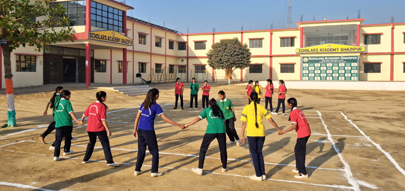 Large open spaces are available for children to play basket ball, hockey, football, badminton, etc. Play equipment like swings, see-saw,..
